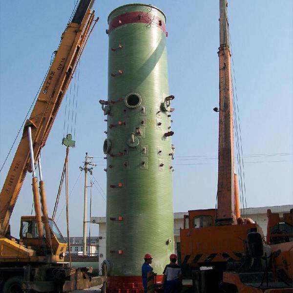 玻璃鋼吸收塔采用阻燃性乙烯基不飽合樹酯為基體,以無堿無捻玻璃纖維為增強材料,通過數(shù)道生產工藝制作而成。外部采用耐老化阻燃型聚酯樹脂;外部采用耐老化阻燃型聚酯樹脂,是園形重疊式分段組裝結構形式。本公司生的玻璃鋼吸收塔具有強度高,結構簡單,制作方便,占地面積小,凈化效率高等優(yōu)點,達到了國家標準,該塔是一種新型的凈化裝置,它采用玻璃鋼為主要材料。