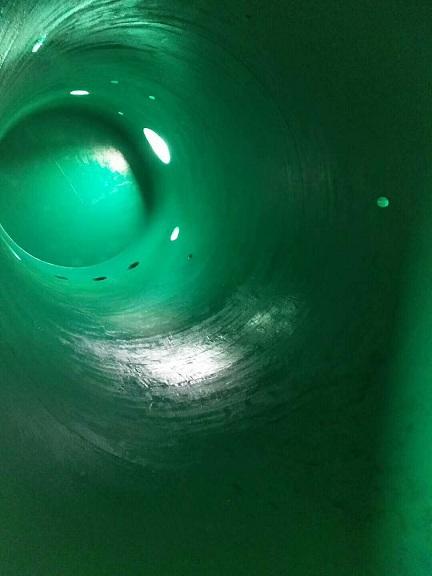 5.當(dāng)一切防腐層檢測(cè)合格后,在內(nèi)襯層表面涂刷一層面漆。面漆的涂刷及環(huán)節(jié)要求與底漆相同。根據(jù)現(xiàn)場(chǎng)環(huán)境溫度按照相應(yīng)的比例在面漆中加入固化劑和促進(jìn)劑攪拌均勻后使用(注意:促進(jìn)劑和固化劑嚴(yán)禁同時(shí)加入,應(yīng)當(dāng)先加入促進(jìn)劑攪拌均勻后再加入固化劑攪拌均勻)。